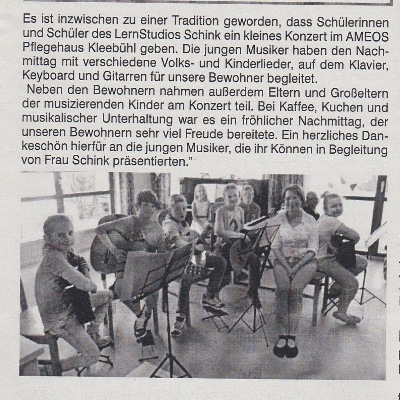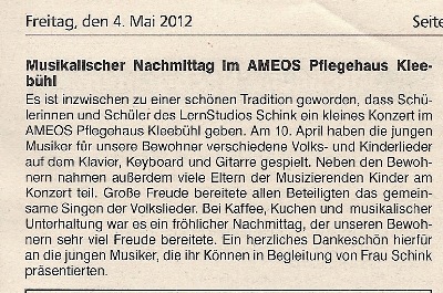 Unser Vorspiel im Pflegehaus Ameos Gemeindeblatt Winterlingen, 4.05.12: