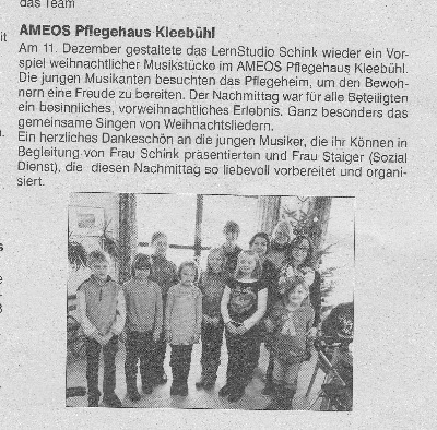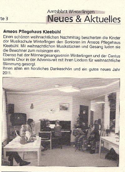 Unser Weihnachtsvorspiel im Pflegehaus Ameos Amsblatt Winterlingen vom 21.01.2011: