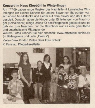 Unser Besuch im Pflegehaus Kleebühl. Amtsblatt Winterlingen vom 31.07.09: